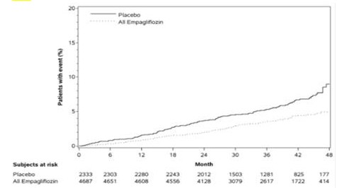 또한 현성알부민뇨가 있는 환자에서 지속적인 정상알부민뇨 또는 미세알부민뇨로의 전환은 위약대비 엠파글리플로진에서 더 높게 나타났다. (엠파글리플로진 49.7%, 위약 28.8%, 위험비(HR) 1.82, 95 % CI 1.40, 2.37).