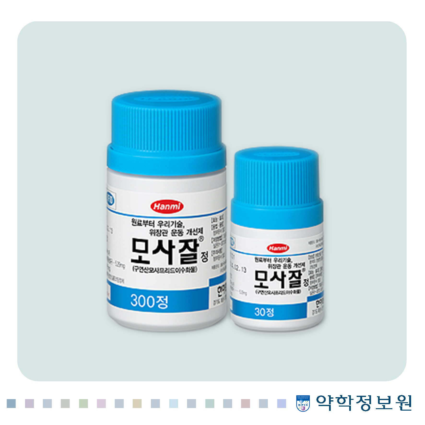 가. 시험약 모사잘정5밀리그램(모사프리드시트르산염수화물)[한미약품㈜]과 대조약 가스모틴정5밀리그램(모사프리드시트르산염수화물)[(주)대웅제약]을 2x2 교차시험으로 각 2정씩 건강한 성인에게 공복 시 단회 경구투여하여 40명의 혈중 모사프리드를 측정한 결과, 비교평가항목치(AUC