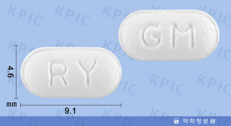 흰색의 장방형 필름코팅정제 |