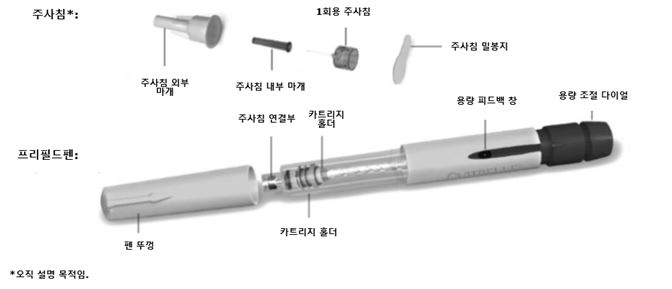 중요: 제공된 프리필드펜과 주사침은 모두 1회용이다.