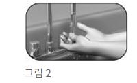 1.3 비누와 물로 손을 씻고 잘 말린다 (그림 2).