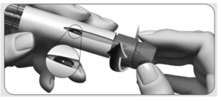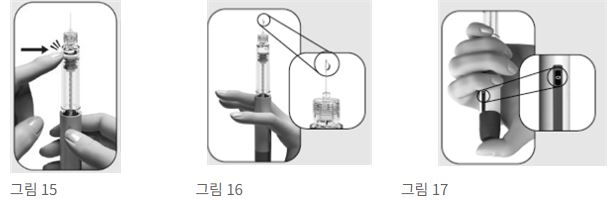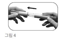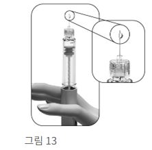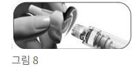3.6 주사침 외부 마개를 나삿니가 있는 프리필드 펜의 끝 부분에 가벼운 저항감이 느껴질 때까지 조인다 (그림 8).