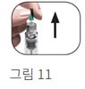 3.9 주사침이 위로 향하도록 프리필드 펜을 잡는다 (그림 11).