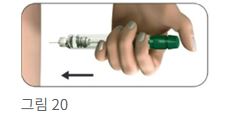 5.1 천천히 주사침을 피부에 완전히 꽂는다 (그림 20).