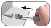 6.4 주사침 외부 마개를 잡고 반대 방향으로 돌려서 주사침을 풀어준다 (그림 26).