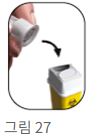 6.5 사용한 주사침을 주사침 용기에 안전하게 폐기한다 (그림 27). 주사침에 다치지 않도록 조심해서 주사침을 다룬다.