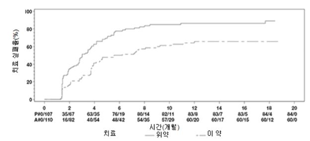시험의 공개라벨 기간에 PASI 75 및 PGA 개선이나 최소 반응은 새로운 안전성 결과 없이 추가적으로 최대 52주 동안 유지되었다.