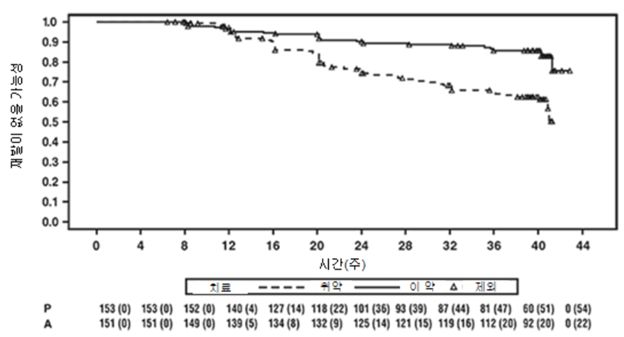 시험의 공개라벨 기간에 PASI 75 및 PGA 개선이나 최소 반응은 새로운 안전성 결과 없이 추가적으로 최대 52주 동안 유지되었다.