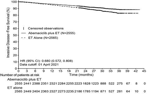 질병 부위 및 이전의(선행) 보조 내분비 요법의 환자 층화 하위군 간에 일관된 결과가 관찰되었다. PFS 분석 시점에 환자의 19%가 사망하였고, 전체 생존 자료는 충분하지 않았다.