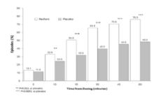 모든 시험약 치료 에피소드 (459 회 에피소드)의 평균 통증 강도 점수 (73 명의 환자)는 위약 (200 회 에피소드)을 투여받은 환자와 비교 시, 투여 후 5, 10, 15, 30, 45 및 60분에 유의하게 더 낮게 나타났다 (그림 2 참조).