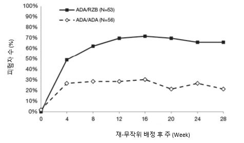 시험대상자들은 0주차와 4주차에 이 약을 150mg 피하투여 또는 위약을 피하 투여받도록 무작위 배정되었다. 위약 투여군의 시험대상자들은 0주차, 4주차에 위약을 투여받은 후 16주차, 20주차 및 그 후 12주마다 이 약 150mg을 투여받았다. 0주차 및 4주차에 이 약 150mg을 피하 투여받은 환자들은 그 후 12주마다 이 약을 계속 투여받았다.