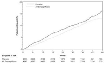 또한 현성알부민뇨가 있는 환자에서 지속적인 정상알부민뇨 또는 미세알부민뇨로의 전환은 위약대비 엠파글리플로진에서 더 높게 나타났다. (엠파글리플로진 49.7%, 위약 28.8%, 위험비(HR) 1.82, 95 % CI 1.40, 2.37).