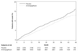 또한 현성알부민뇨가 있는 환자에서 지속적인 정상알부민뇨 또는 미세알부민뇨로의 전환은 위약대비 엠파글리플로진에서 더 높게 나타났다. (엠파글리플로진 49.7%, 위약 28.8%, 위험비(HR) 1.82, 95 % CI 1.40, 2.37).