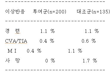 4) 수술 전 동종 적혈구 수혈의 감소를 목적으로 에리스로포이에틴 제제를 투여 받은 환자에서 심부 정맥 혈전증의 빈도가 높게 나타났다.