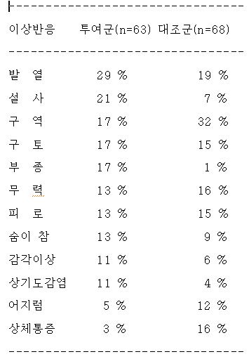6) 소화기계 : 때때로 복통, 구역, 구토, 식욕부진, 설사가 나타날 수 있다.