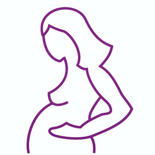 한쪽면에 핑크색 임산부 그림이 새겨진 양면이 볼록한 흰색의 원형 필름코팅 장용정