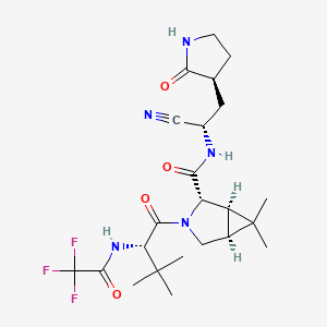 | 작용기전 | 니르마트렐비르는 SARS-CoV-2 주요 단백질분해효소(Mpro), 또는 3C유사 단백질분해효소(3CLpro) 또는 nsp5 단백질분해효소라고도 하는 모방 단백질분해효소 억제제이다. SARS-CoV-2 Mpro가 억제되면 다단백질 전구체를 처리할 수 없어 바이러스 복제를 방지한다. | |